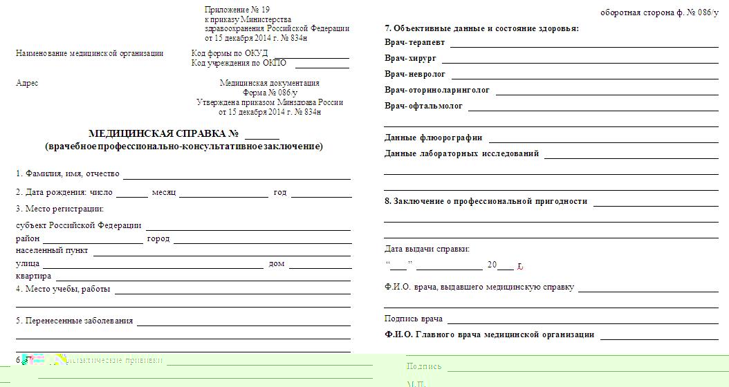 Мед справка 086 у и ее срок годности